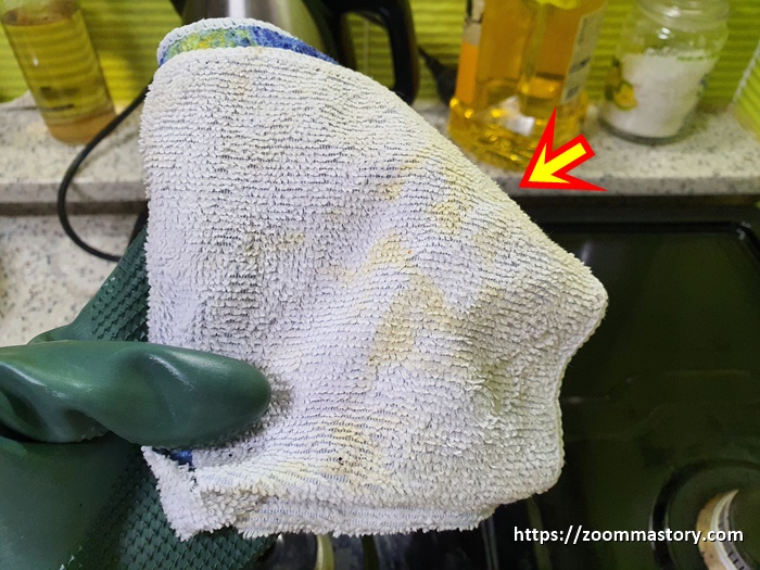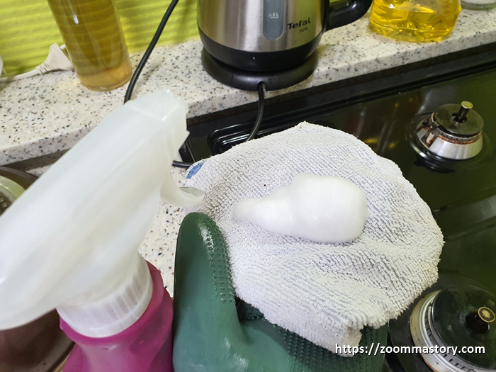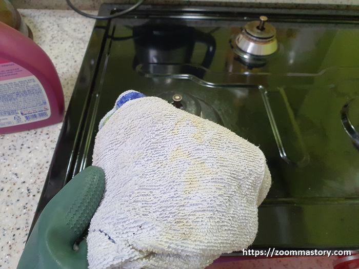 여느때처럼 오늘도 설거지 후 가스렌지에 튄 기름을 닦았다.
