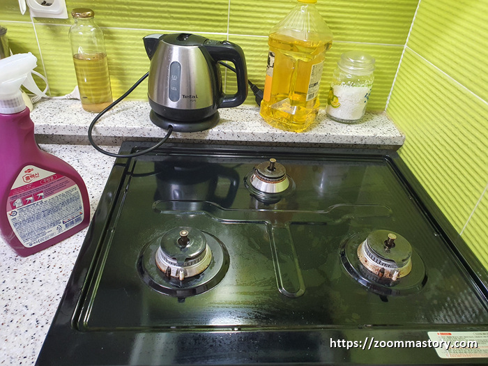 늘 그렇듯 기름은 가스렌지 주변 온 사방에 자연스럽게 튀기 마련...