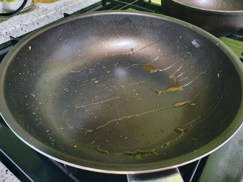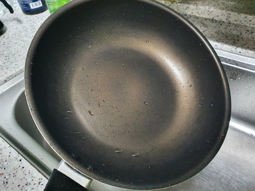처음부터 주방세제를 묻혀 닦은 후에 보기에는 깔끔해 보여도 사실 냄새를 맡아보면 후라이팬엔 여전히 생선 비린내가 납니다.
