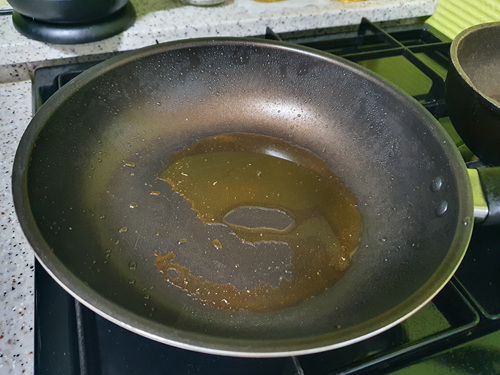 처음부터 주방세제를 묻혀 닦은 후에 보기에는 깔끔해 보여도 사실 냄새를 맡아보면 후라이팬엔 여전히 생선 비린내가 납니다.