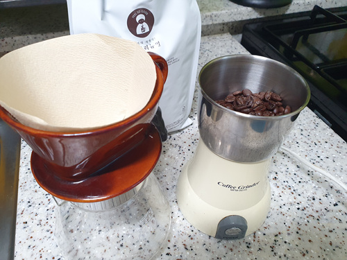 간만에 집에서 드립커피 한 잔 해 보네요. 원두를 분쇄하고 커피를 내리는 날은 온 집안이 향긋한 커피 내음으로 채워져서 좋긴 해요.