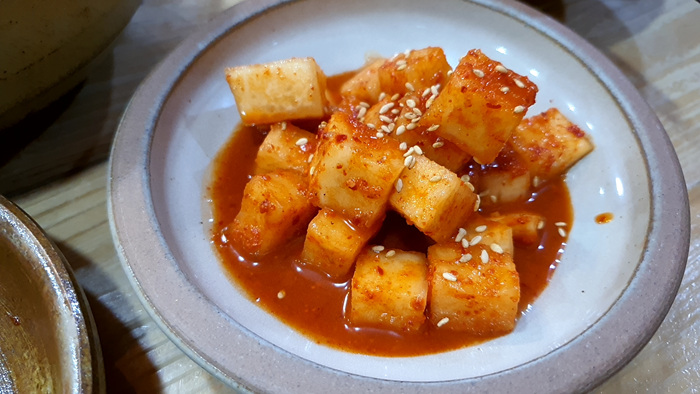 시락국밥이든 팥칼국수든 깍두기 반찬 하나면 끝이죠.