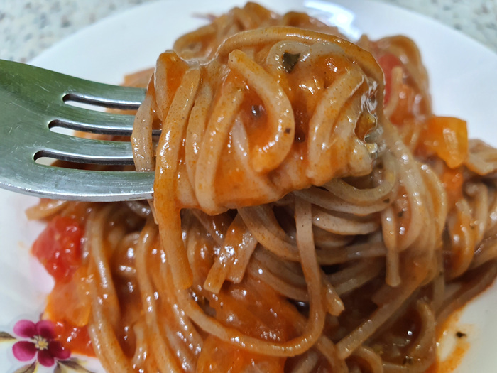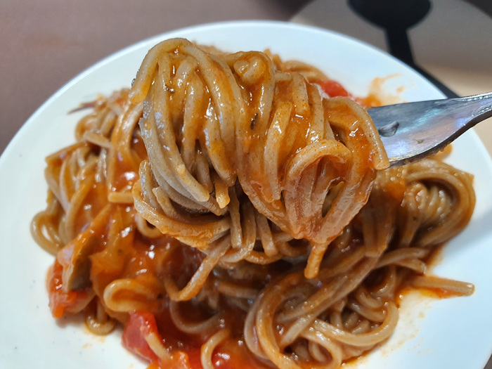 그렇게 우여곡절 끝에 완성한 메밀국수로 만든 스파게티....🍝