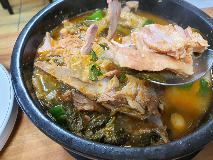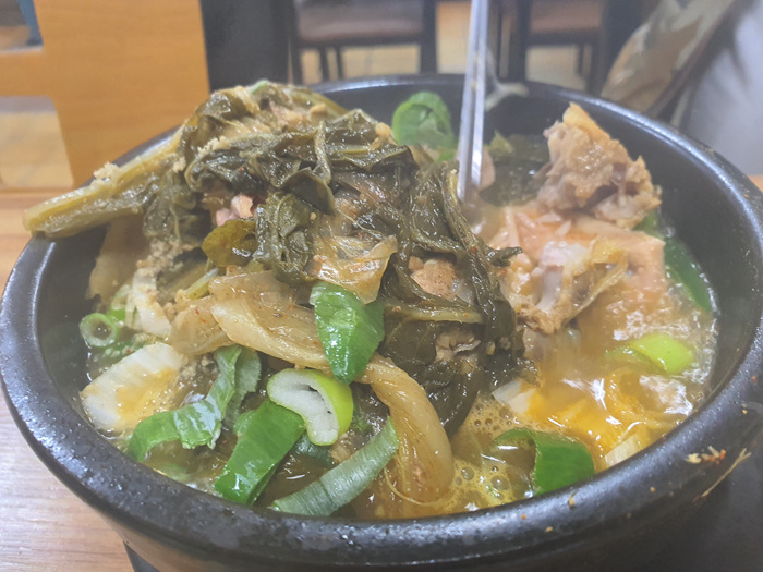 주문한 뼈다귀 해장국이 나왔다. 생각보다 푸짐한 양이 놀랐다. 시레기도 많이 들어 있고 고기도 많이 들어 있었다. 물론 뚝배기 크기도 작지 않았다. 이 정도면 밥 없이 그냥 먹어도 배가 부를 것 같다는 생각이 들었다.