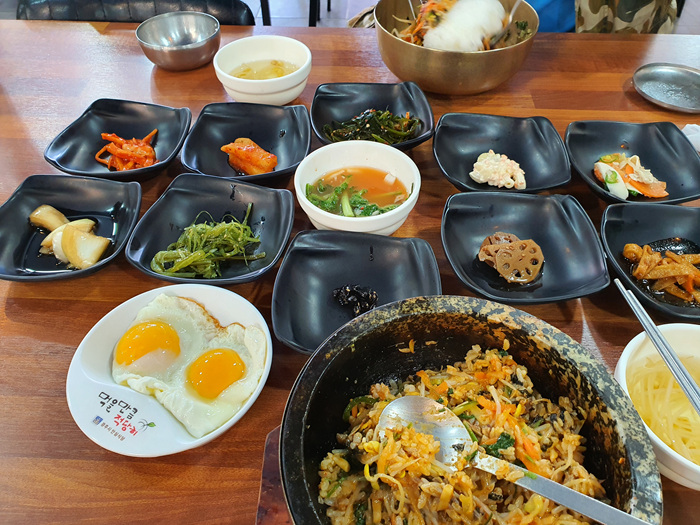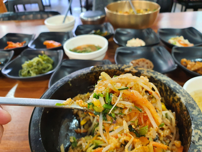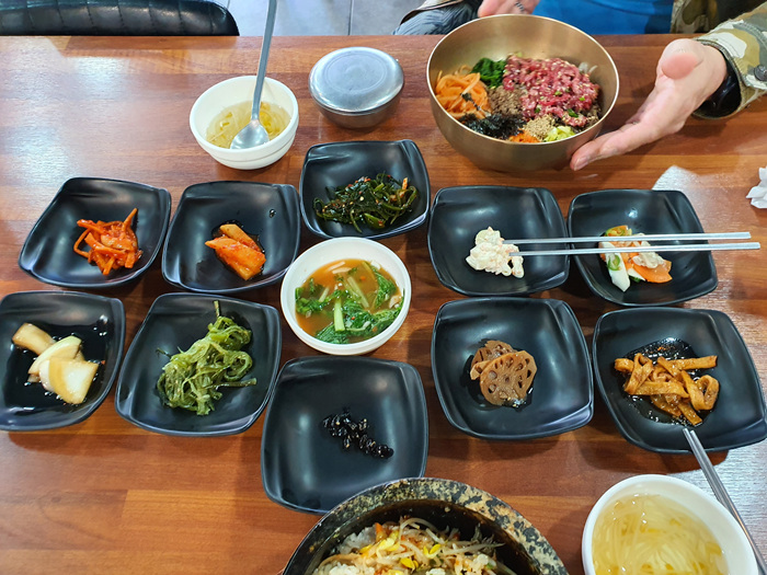 돌솥비빔밥과 육회비빔밥이 나왔다. 생각보다 괜찮은 비주얼에 흡족했다. 그럼 맛은 어땠을까? 뭐랄까... 특별하게 느껴진 맛은 아니고 평소 우리가 음식점에서 맛보던 그런 평범함이 그대로 느껴졌다. 뭐든 너무 큰 기대는 실망이 큰 법이란 말이 생각났다. 하여간 나쁘지 않은 맛이라 한끼 식사로 든든히 먹었던 기억이 난다.