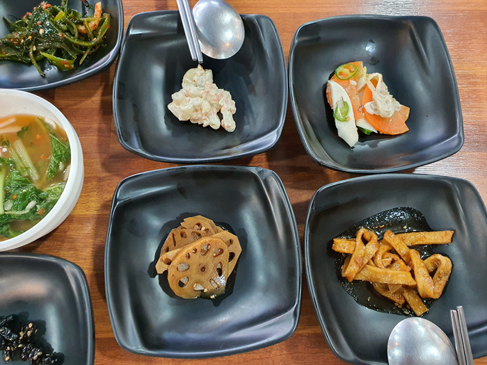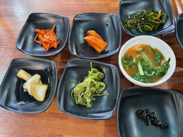 주문과 동시에 차려진 반찬은 마치 한정식을 방불케 할 정도로 여러가지가 나왔다. 반찬 대부분 간이 조금 세긴 했지만 그렇게 맛은 없진 않았다.