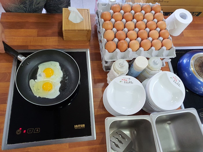 밥을 먹고 있으니 달걀후라이는 직접 해 먹어야 한다고 해 우린 달걀후라이를 해 먹었다. 조금 귀찮긴 했지만 이것 또한 음식값에 포함된거라 그냥 지나치기 아쉬웠었다.