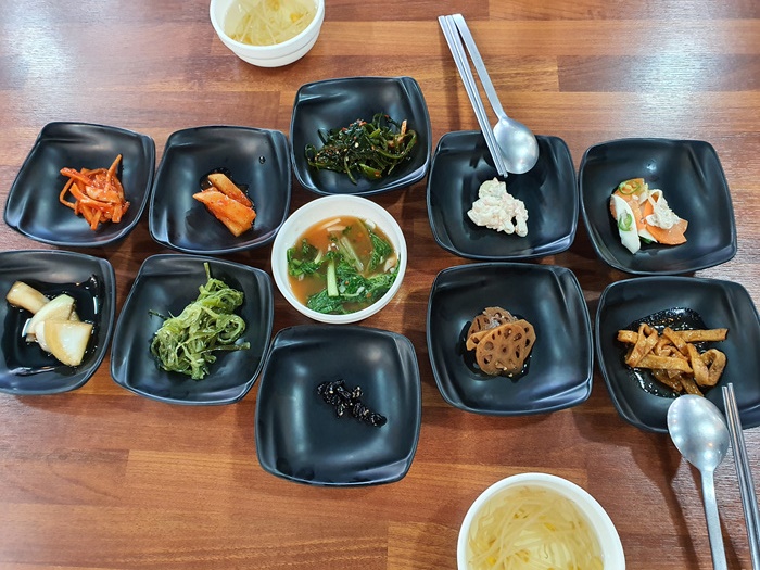주문과 동시에 차려진 반찬은 마치 한정식을 방불케 할 정도로 여러가지가 나왔다. 반찬 대부분 간이 조금 세긴 했지만 그렇게 맛은 없진 않았다.