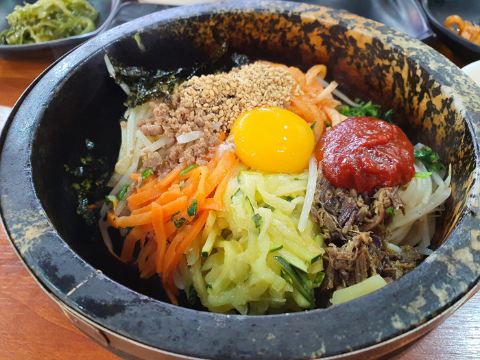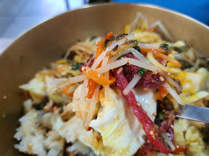 돌솥비빔밥과 육회비빔밥이 나왔다. 생각보다 괜찮은 비주얼에 흡족했다. 그럼 맛은 어땠을까? 뭐랄까... 특별하게 느껴진 맛은 아니고 평소 우리가 음식점에서 맛보던 그런 평범함이 그대로 느껴졌다. 뭐든 너무 큰 기대는 실망이 큰 법이란 말이 생각났다. 하여간 나쁘지 않은 맛이라 한끼 식사로 든든히 먹었던 기억이 난다.