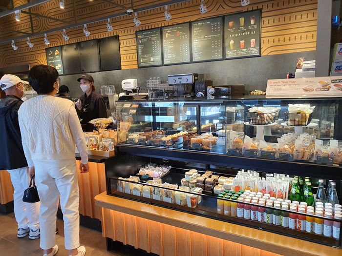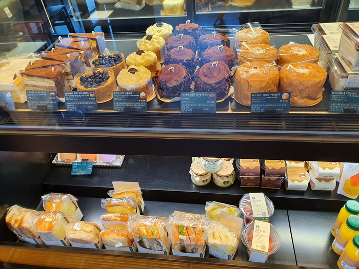 디저트는 스타벅스 어느 매장에서나 보던 그런 종류들로 가득했다.