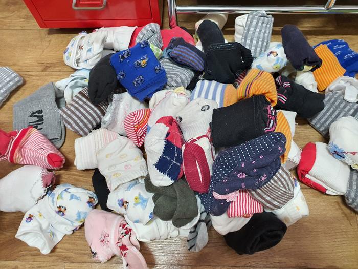 양말을 정리하니 꽤 많은 버리는 양말이 모였다. 이렇게 모아 뒀다가 청소할때 사용하면 완전 괜찮다.