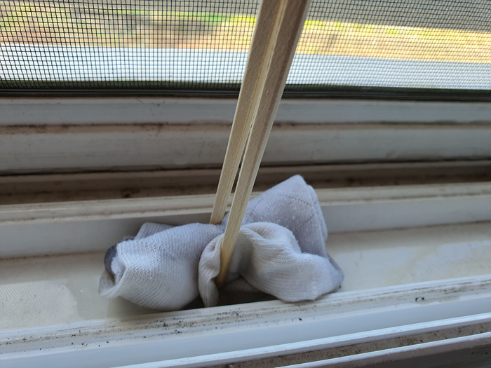 베란다 청소할때 준비할 것은? 나무젓가락, 버리는 양말 그리고 고무장갑이다.