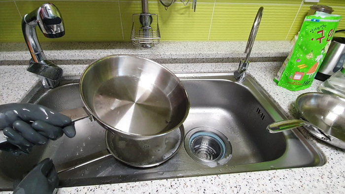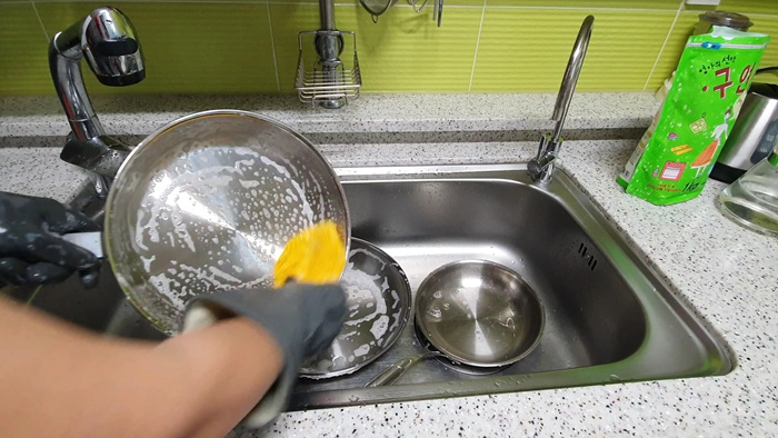 스테인레스 제품을 사용하다 보면 각종 얼룩이 잘 생기는 것 같아요. 그럴때마다 구연산물을 사용하면 손쉽게 제거할 수 있으니 후라이팬 뿐만 아니라 냄비, 솥등도 같은 방법으로 한 번씩 닦으면 오랫동안 깔끔하게 사용할 수 있을겁니다.