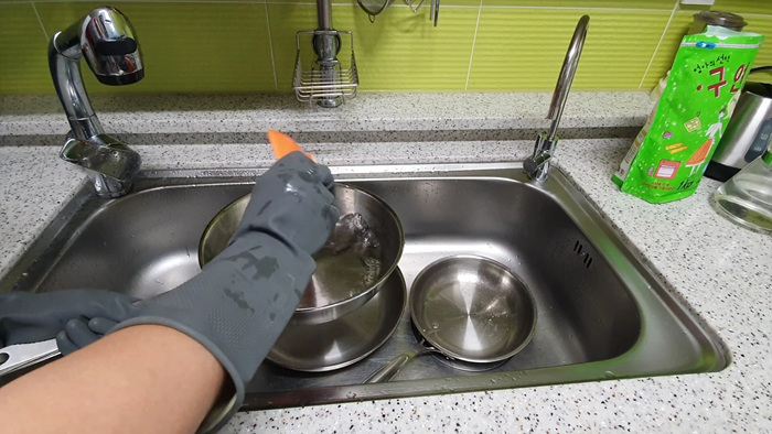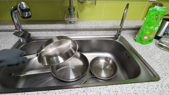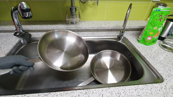 스테인레스 제품을 사용하다 보면 각종 얼룩이 잘 생기는 것 같아요. 그럴때마다 구연산물을 사용하면 손쉽게 제거할 수 있으니 후라이팬 뿐만 아니라 냄비, 솥등도 같은 방법으로 한 번씩 닦으면 오랫동안 깔끔하게 사용할 수 있을겁니다.