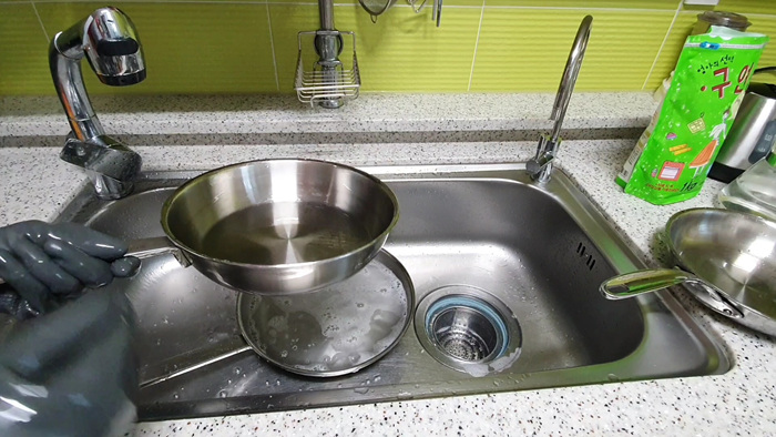 깨끗해진 스테인레스 후라이팬의 모습