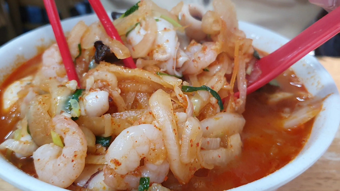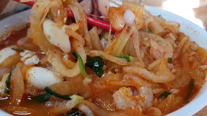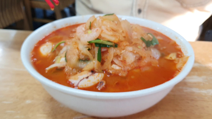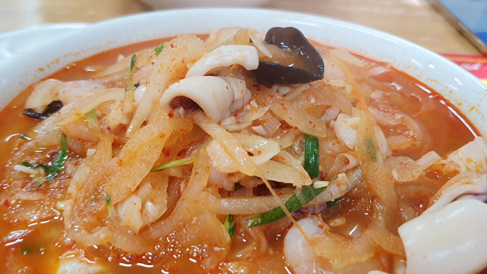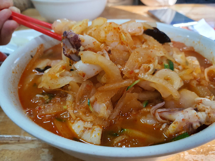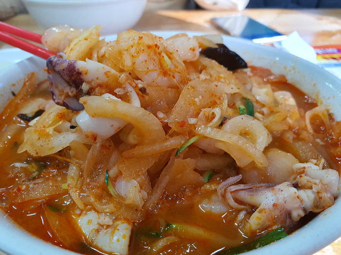 얼마나 기다렸을까.. 드디어 이곳에서 유명한 짬뽕이 입성했습니다. 역시 푸짐한 해물의 양에 놀라네요.