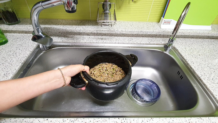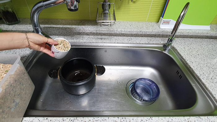 한 끗 차이긴 하지만 물을 붓고 쌀을 넣으면 밥솥 바닥이 흠집 나는 것을 훨씬 줄어들게 하기에 밥솥의 수명을 연장하는 지름길이기도 하지요. 물론 다른 그릇에 씻어 옮겨 담으면 더 좋겠지만요.