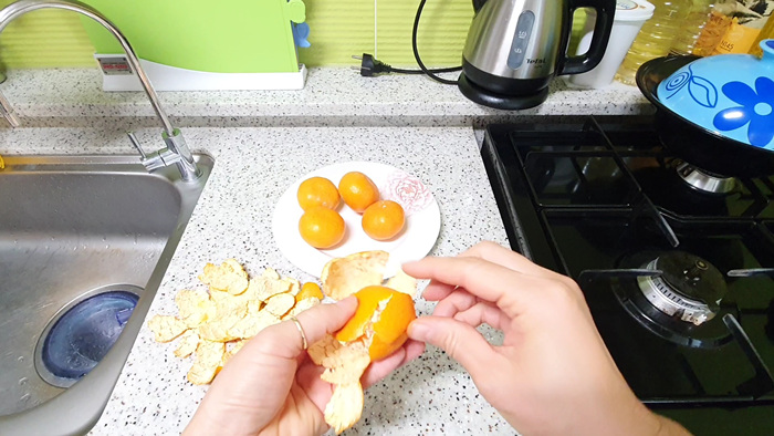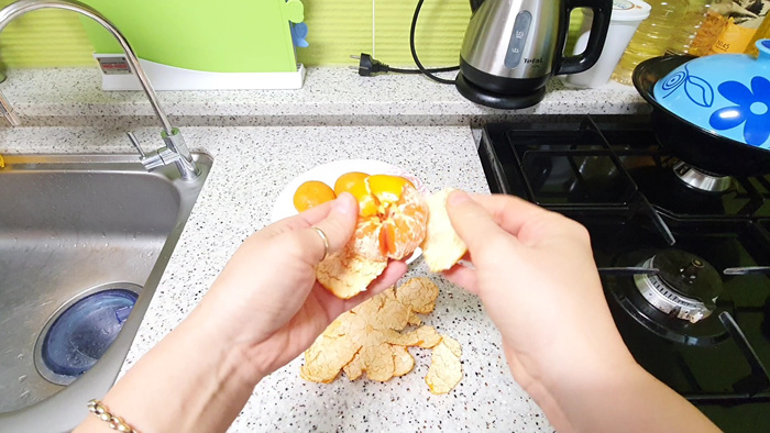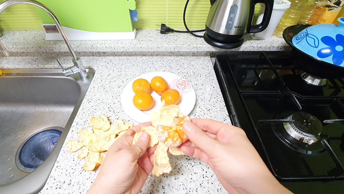 밀감 먹다 남으면 벗겨 놓은 밀감껍질로 감싸줍니다.