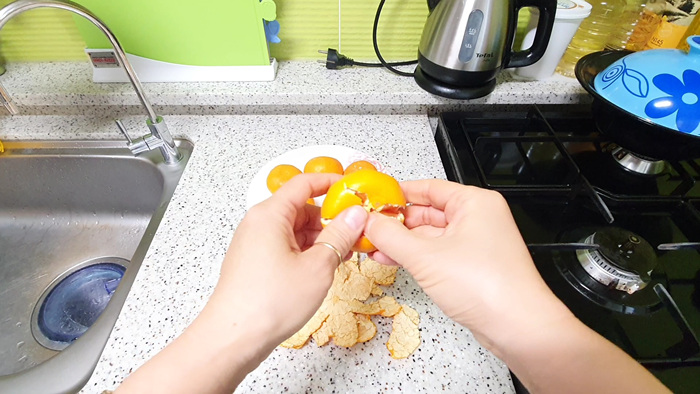그 상태에서 가로로 한 번더 누르면 껍질이 잘 벗기게 됩니다.