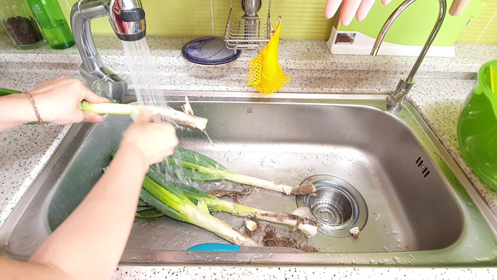 씻을때는 흙이 깨끗이 제거되도록 한개씩 흐르는 물에 씻어 준다.