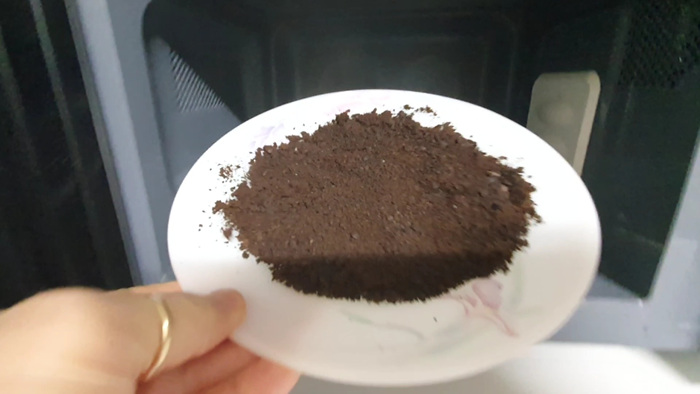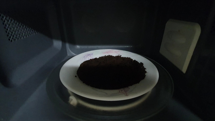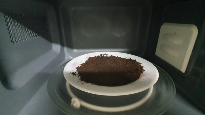 많은 커피 찌꺼기를 건조 시킬땐 한 번 전자렌지에 돌리고 다른 찌꺼기를 펼쳐 섞은 후...