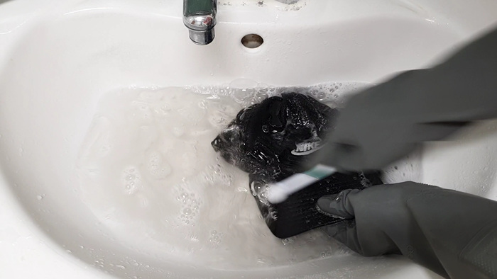 제일 지저분한 부분부터 칫솔을 이용해 씻고..