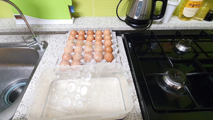 그러고 보니 얼마전 달걀 한판 사왔는데 동네 마트에 갔다가 더 저렴해진 달걀에 또 한판 사오게 된 상황 ...이젠 잘 보관해 위생적으로 먹는게 중요한 때라 큰 락앤락을 준비했다.