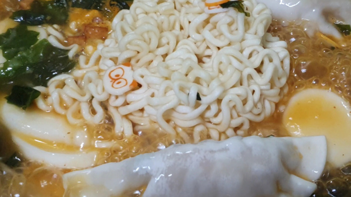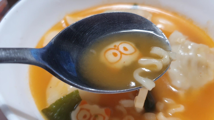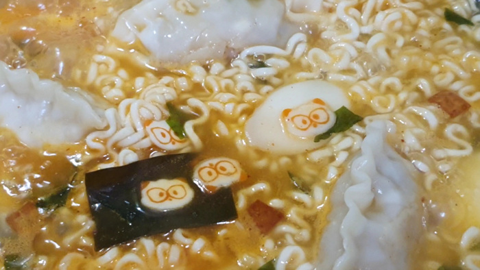 라면 속엔 귀여운 너구리 얼굴을 한 고명이 있었다.