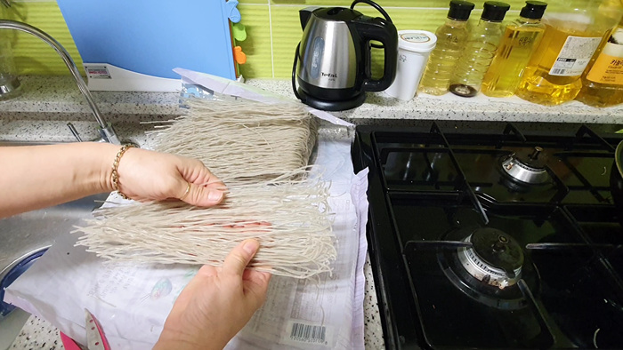 대용량 당면이고 이렇게 먹기 좋게 잘라 나오지 않은거라면 당면을 다 꺼내 구부러진 부분을 가위로 잘라 놓으세요.