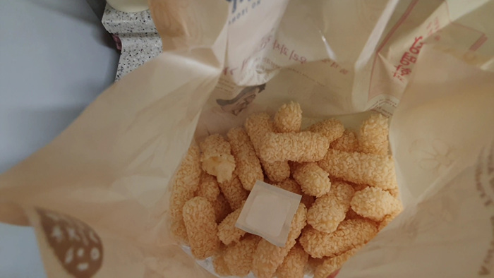 대용량 과자 즉, 비닐봉지에 든 내용물이 식품 속 실리카겔 덕분에 눅눅하지 않고 다 먹을때까지 바삭해 정말 좋답니다.