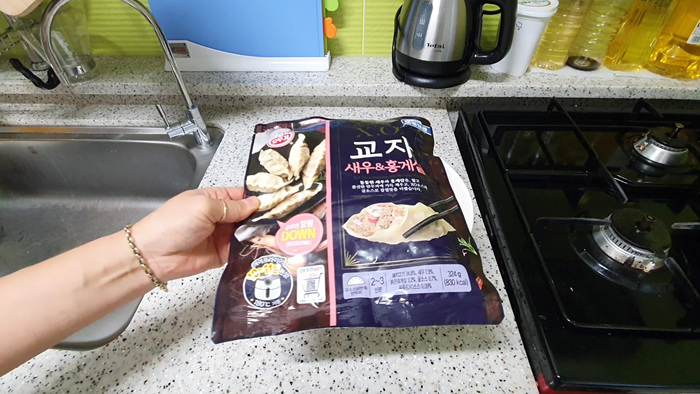 1. 냉동 만두를 냉동실에서 꺼낸다.