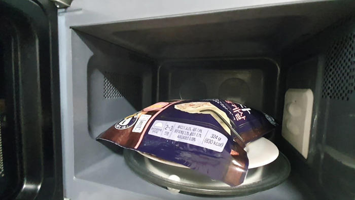 5. 전자렌지로 4~ 5분 정도 돌린다. (가정용 마다 kw가 다르니 그건 참고! )