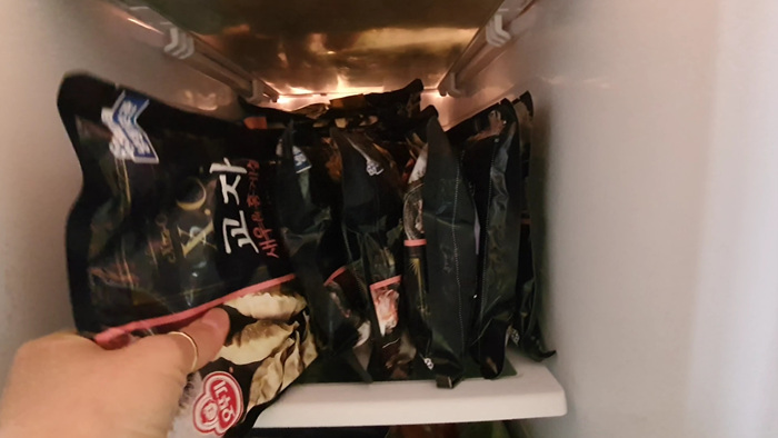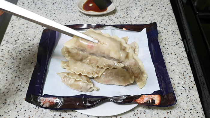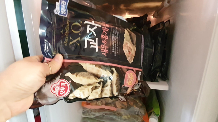 1. 냉동 만두를 냉동실에서 꺼낸다.
