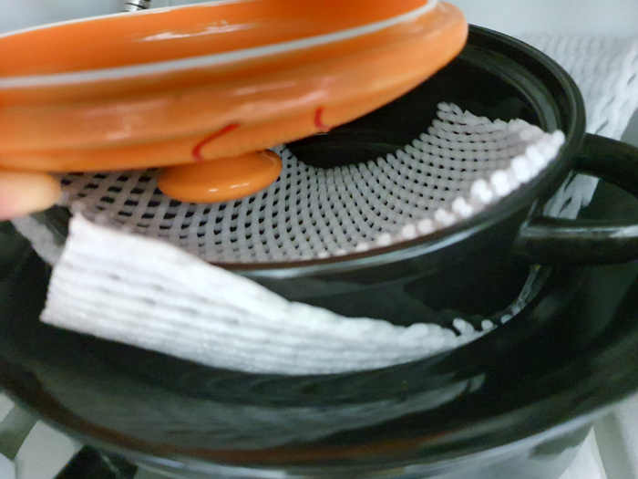 냄비나 그릇 사이에 끼워 사용하는 분들은 계실지 몰라도 칼갈이에 끼워 사용하는 건 처음 보시죠. 뭐든 필요에 의해 하나둘씩 만들어 가면 생활이 아주 편해진답니다. 우리 주부님들 공감하실 거예요.