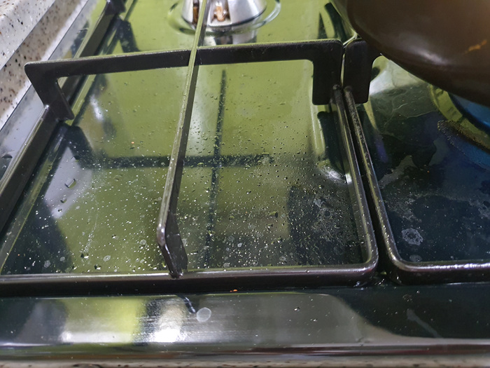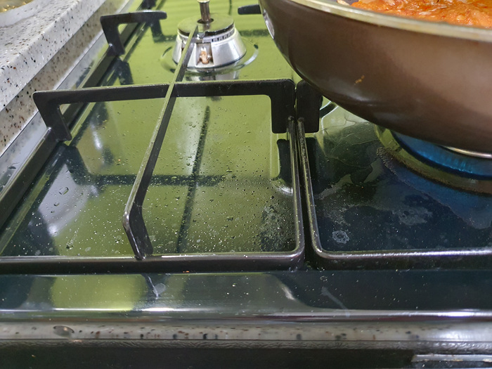 그런데 맛있게 부침개를 먹으면 어김없이 가스레인지 청소는 기본이죠. 번거롭긴 해도 기름기 가득한 채 방치하면 온 집안에 기름 냄새가 납니다. 뭐니뭐니 해도 빠른 청소가 답이지요.