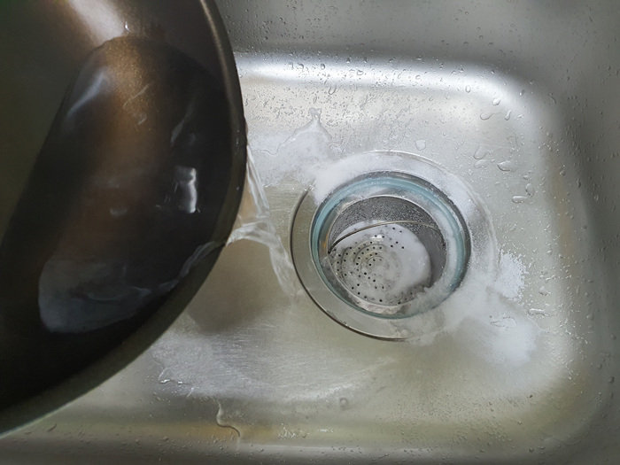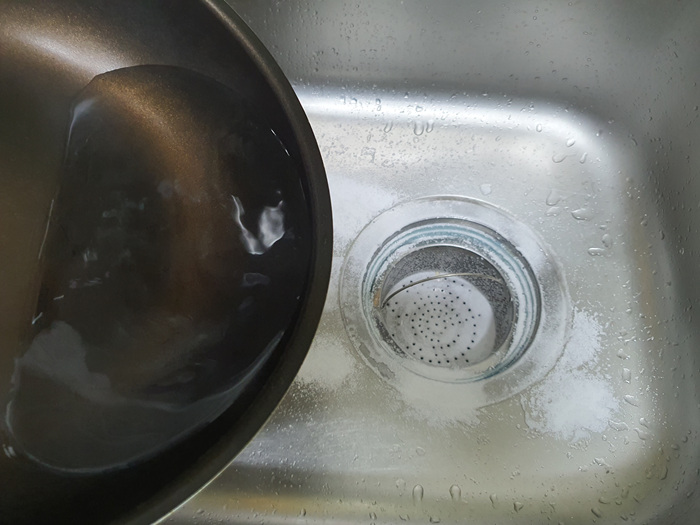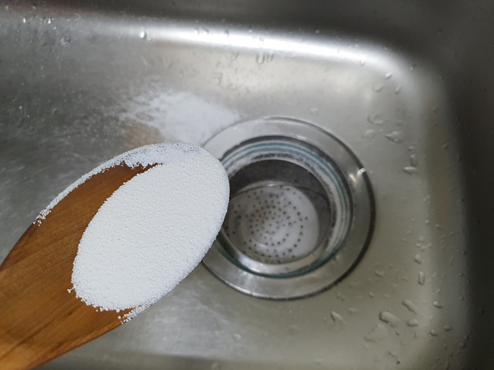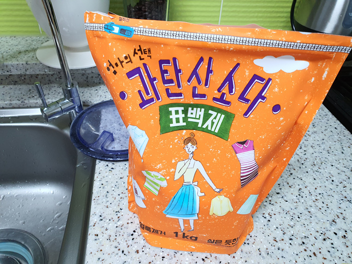 청소 방법은 간단해요. 과탄산소다를 싱크대 개수대 통안에 한 스푼 넣어 줍니다. 그리고 너무 뜨겁지 않는 물을 부어 줍니다. 너무 뜨거우면 싱크대 개수대 호수 부분이 변형을 가져 올수 있으니 주의 해야 해요.
