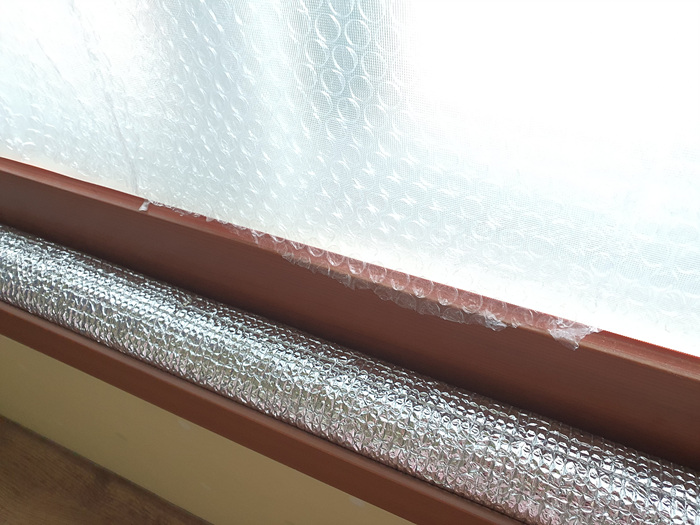 그래서 준비한 것이 바로 요거요거~ 수도등 동파 방지용으로 사용하는 은박지 덮개인데요. 이걸 이용해 창문 틈사이로 들어 오는 바람을 막을겁니다.