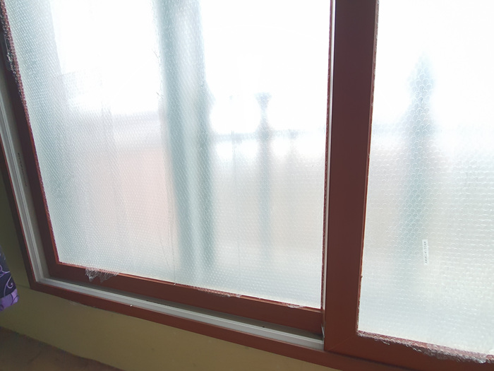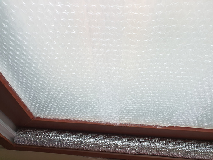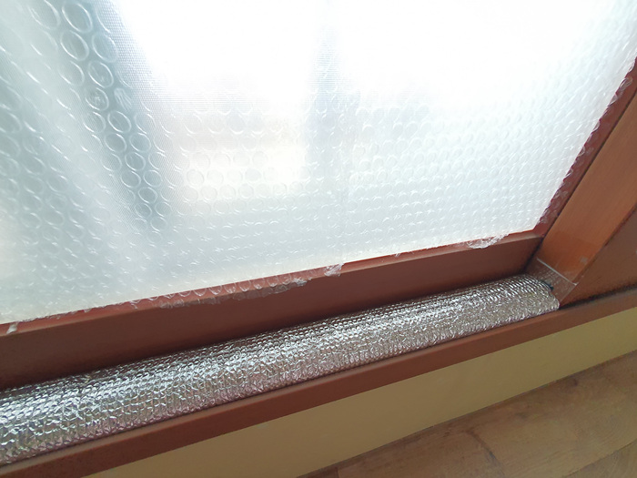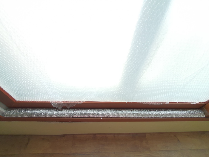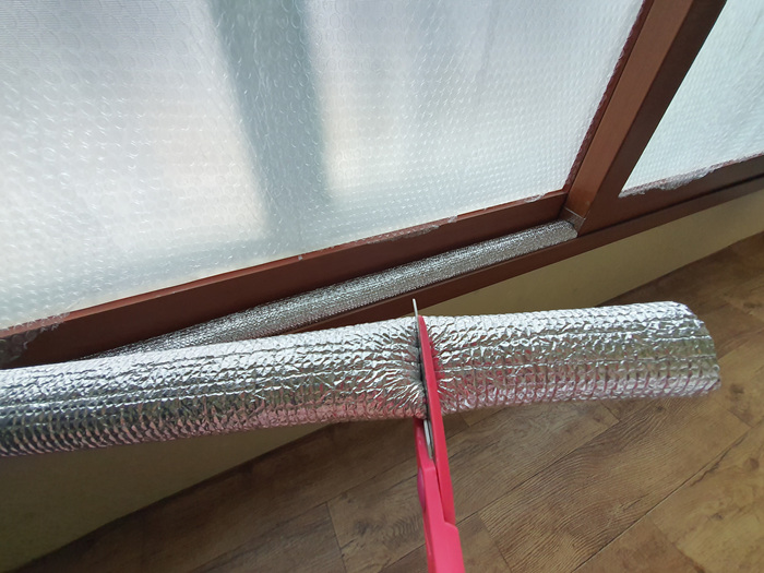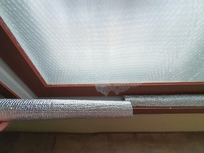 그래서 준비한 것이 바로 요거요거~ 수도등 동파 방지용으로 사용하는 은박지 덮개인데요. 이걸 이용해 창문 틈사이로 들어 오는 바람을 막을겁니다.