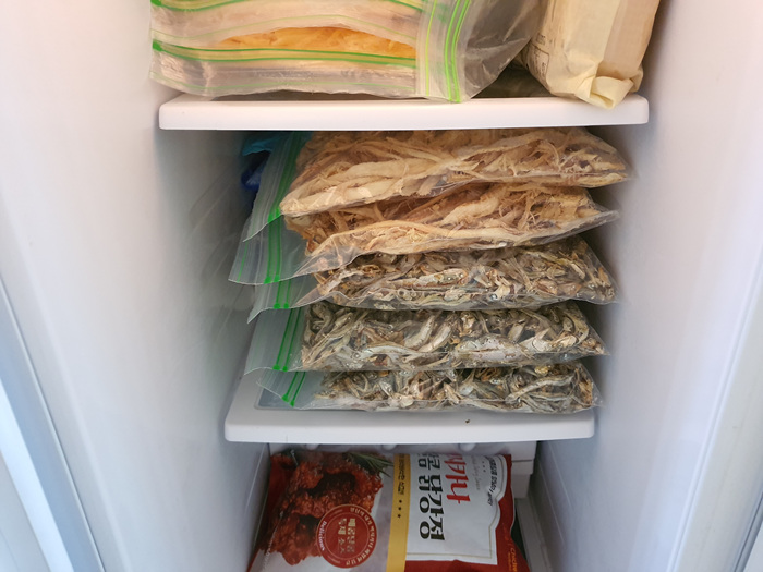 오늘은 냉동실에 넣을 식재료 정리하는 날입니다. 냉동실에 넣기 위해선 소분으로 포장해 정리해야 깔끔하고 재료를 사용할때 한결 편합니다. 멸치와 황태를 소분 포장해 냉동실에 넣을까합니다.
