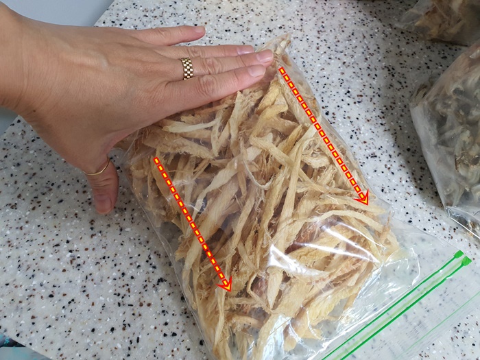 소분으로 지퍼백에 넣었음에도 어찌나 부피가 많이 차지하는지 그래서 진공으로 포장해 넣기로 했지요. 우리가 이불이나 옷 같은 것을 압축해 넣는 것처럼 말이죠.