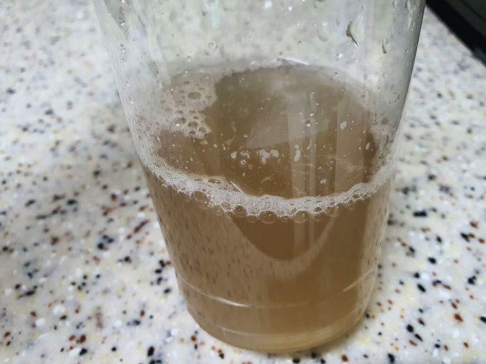 감자껍질 액기스를 짜니 은근히 색이 갈색이예요. 이것으로 머리에 헹굼을 하면 흰머리가 서서히 갈색으로 된다고 하니 믿고 따라해 보려구요.
