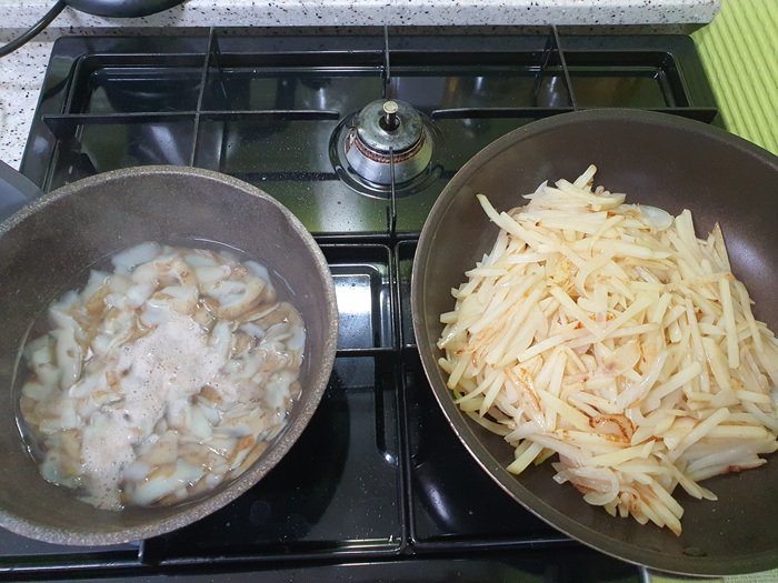 감자껍질물을 만들때 넘칠 수 있으니 가스렌지 주변에서 대기하는게 좋아요. 전 그런 이유에서 감자 볶으면서 기다렸어요. 반찬도 하나 만들고 감자껍질 물이 넘치나 안 넘치나 볼수 있으니까요.