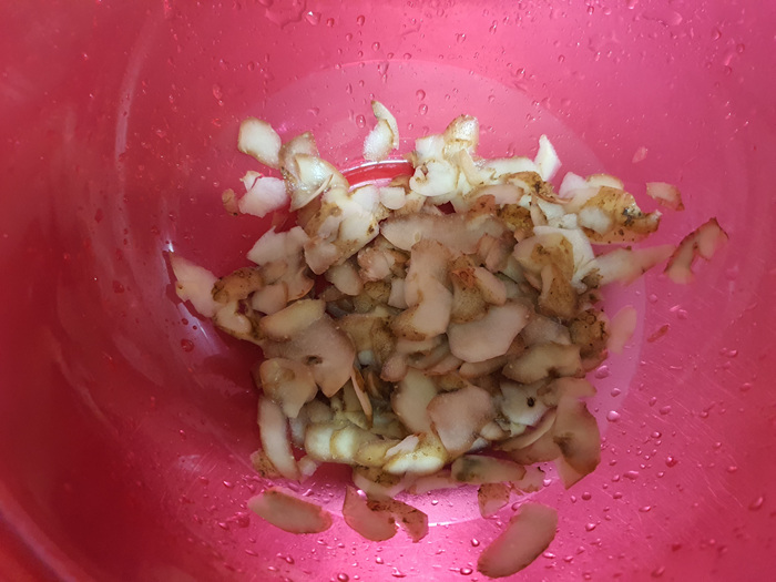 껍질을 벗긴 감자는 요리를 할때 먹고요. 나머지 껍질은 끓여서 머리에 사용할거예요.