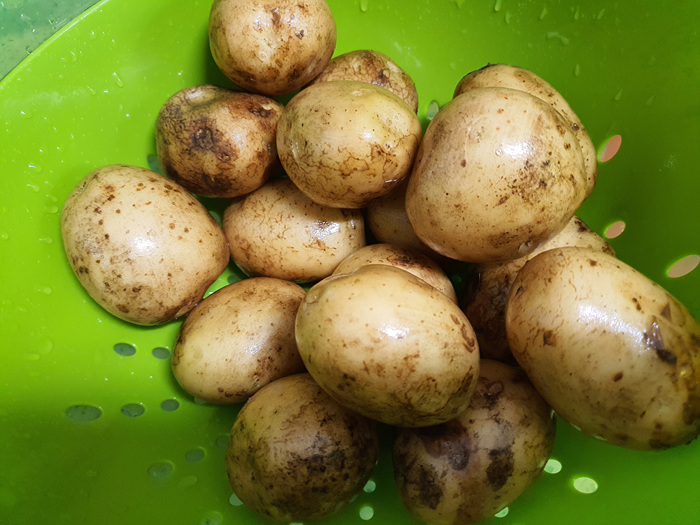 감자껍질이 염색약 대용으로 사용하면 참 좋다는 이야기를 방송에서 보고 최근엔 감자껍질 벗길때는 무조건 모아서 끓입니다. 감자껍질을 사용하기때문에 흙이 묻은 감자는 일단 먼저 깨끗이 씻어요.