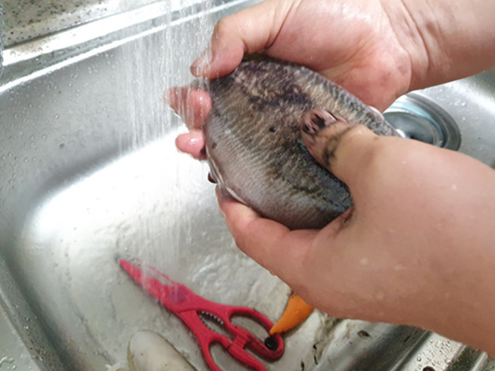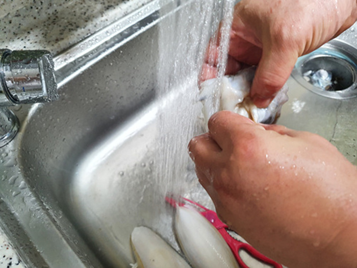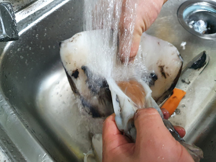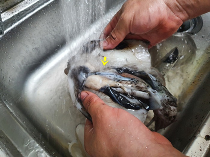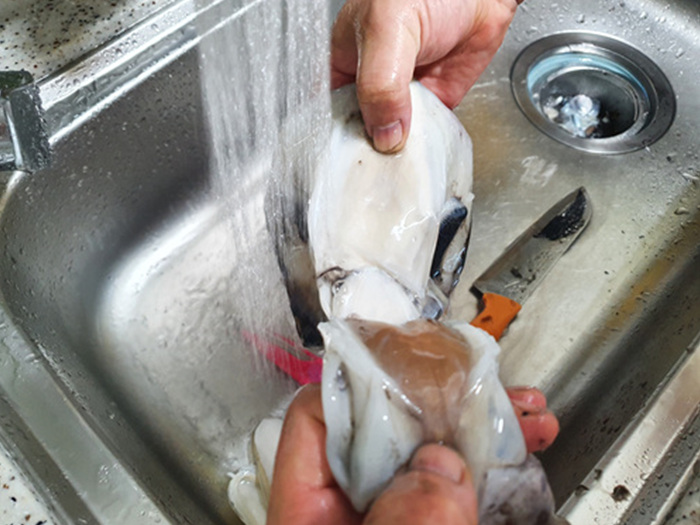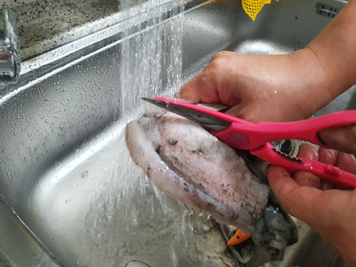 제일 먼저 갑오징어를 씻은 뒤 손질하기로 했다.
