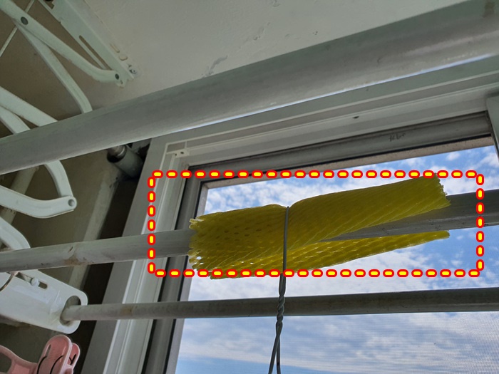 빨래를 널기 전 과일 포장망을 건조대에 올린 후 그 위에 세탁소 옷걸이를 걸었다.