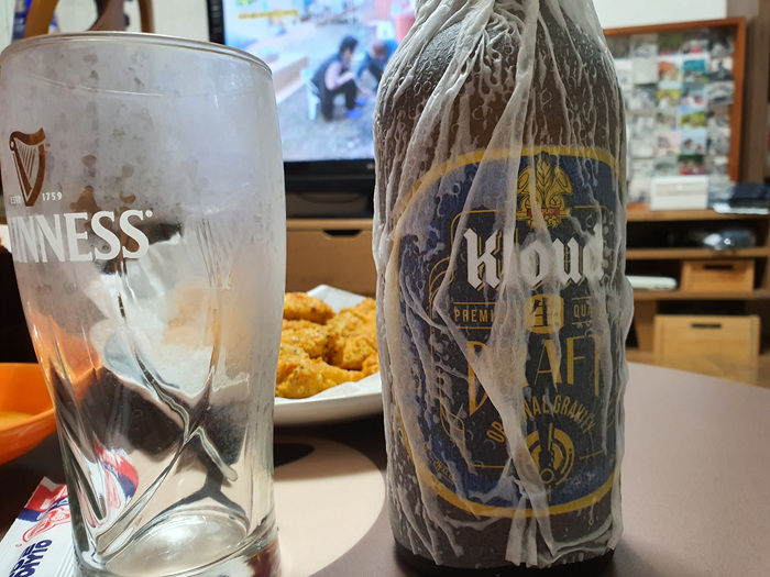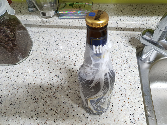 갑자기 시원한 맥주가 있어야 한다면 키친타월로 맥주병을 감싸는거 잊지 마시길...
