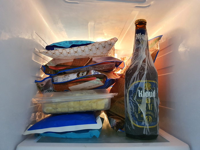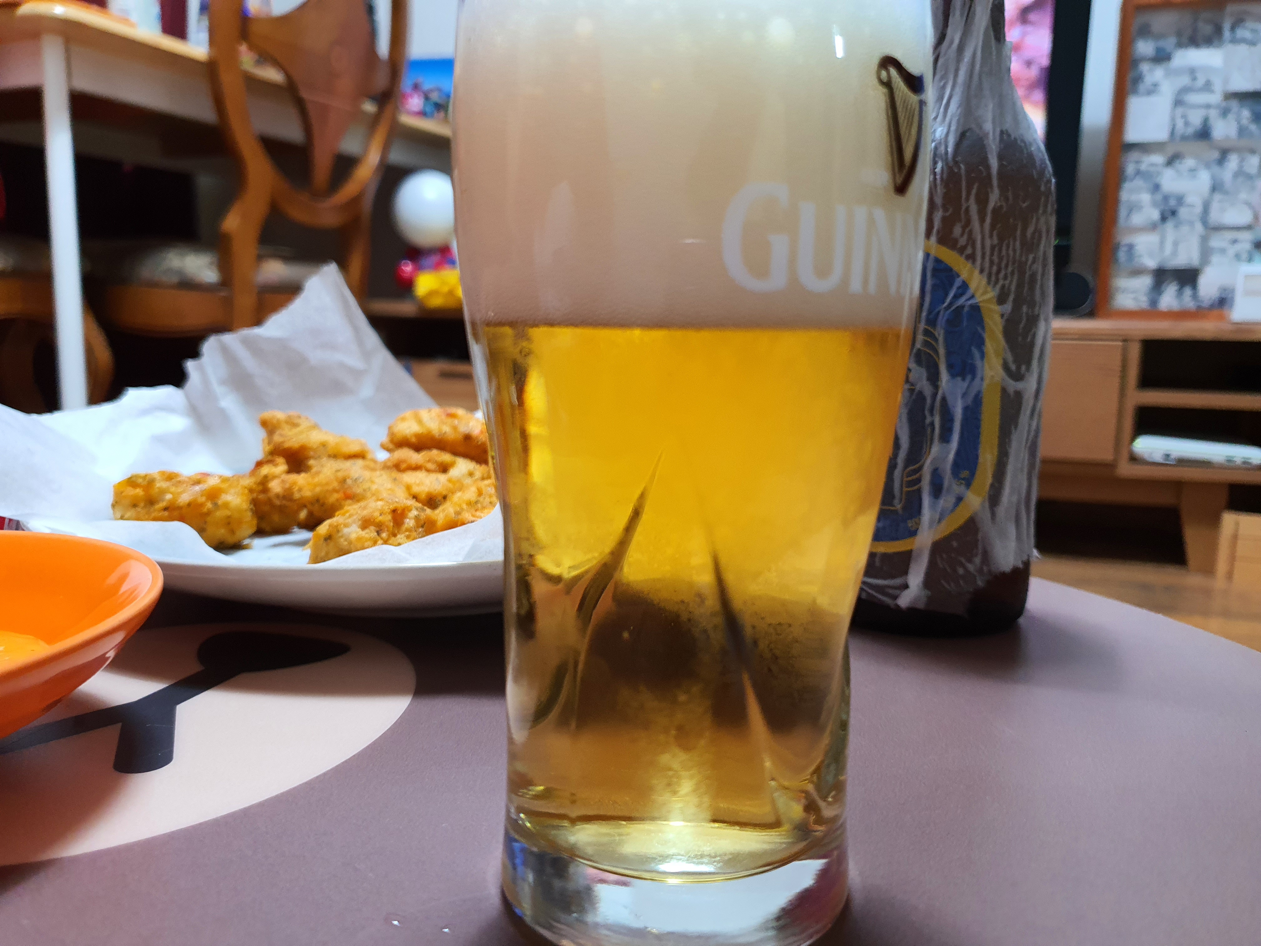난 에어프라이어에 냉동 치킨을 돌리는 동안 맥주를 냉동실에 넣어 두었다.
