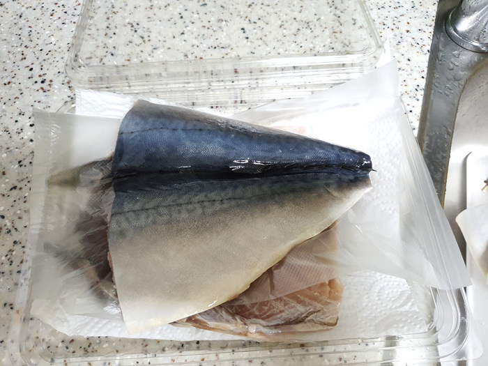 고등어를 깨끗이 씻었다면 물기를 잘 제거하는게 중요하다.