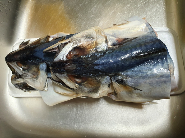 고등어를 깨끗이 씻었다면 물기를 잘 제거하는게 중요하다.